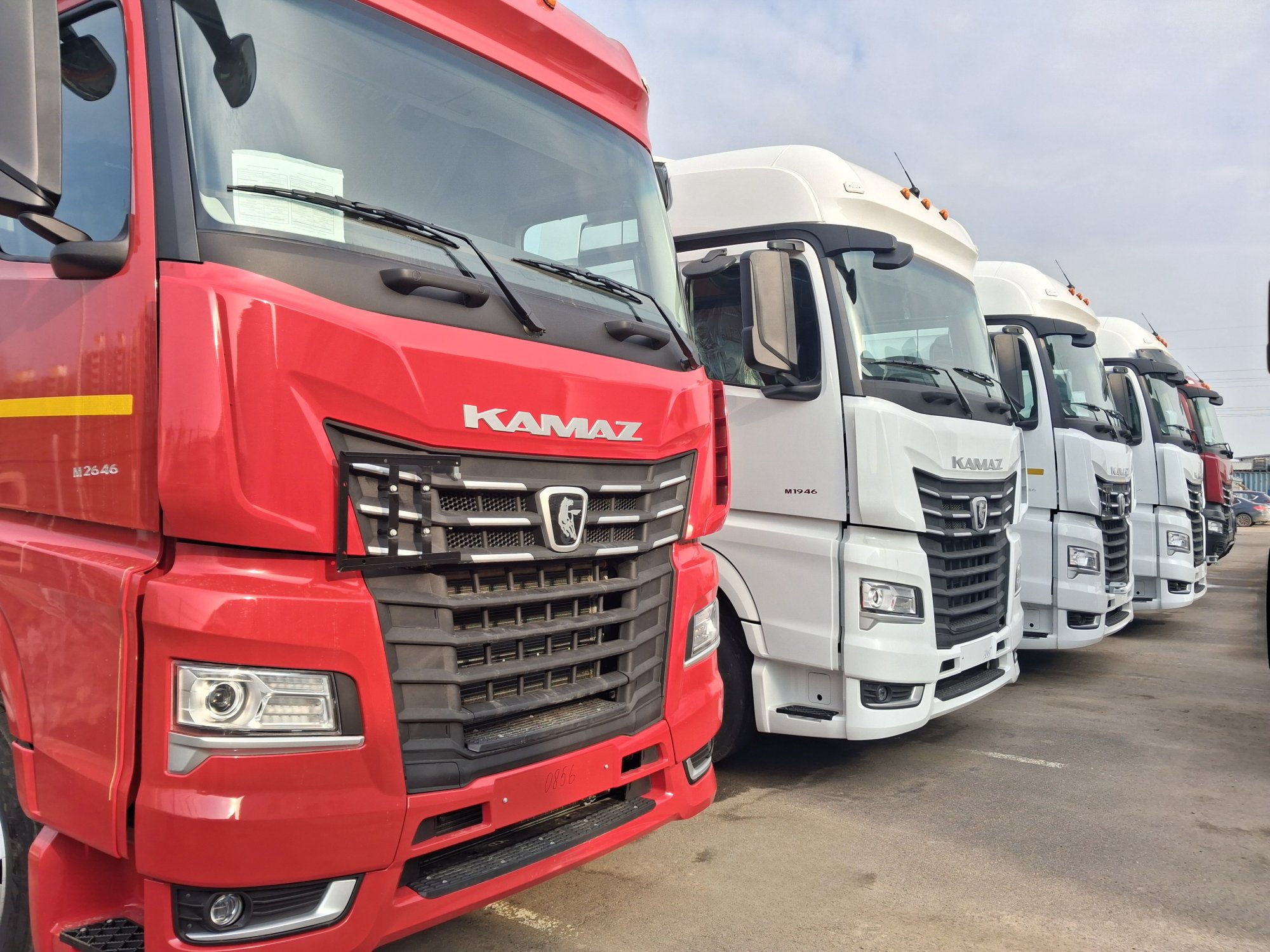 В наличии – актуальные модели: магистральные тягачи КАМАЗ‑54901 (в том числе в исполнении High‑Tech) и КАМАЗ‑54902, самосвалы КАМАЗ‑65951 (8×4), КАМАЗ‑65959 (6×6) и другие.
