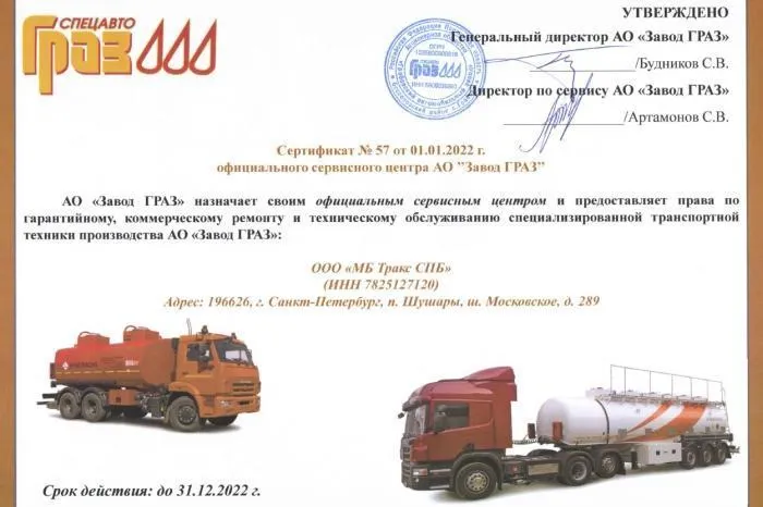 Автоцентр «МБ Тракс СПб» - официальная сервисная станция «Завода ГРАЗ». Успешно подтвердили статус партнера на 2022 год!
