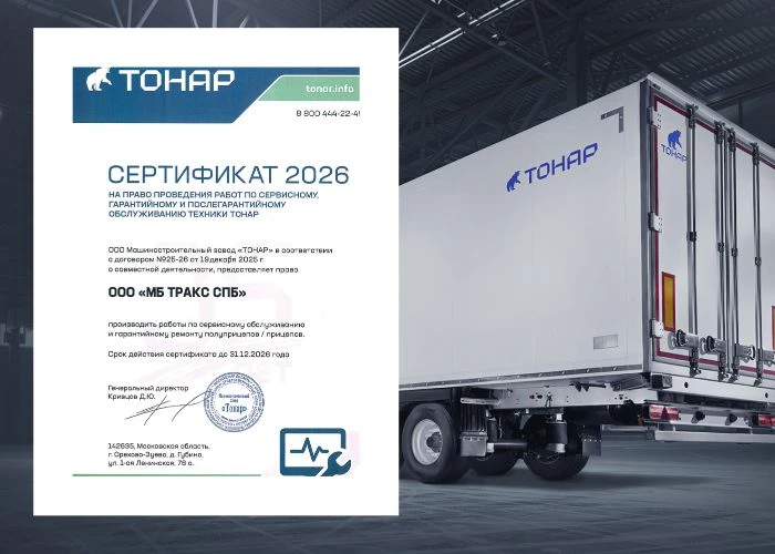 Продолжаем многолетнее сотрудничество с заводом ТОНАР и в 2026 году. Автоцентр «МБ Тракс СПб» - официальная сервисная станция ТОНАР.