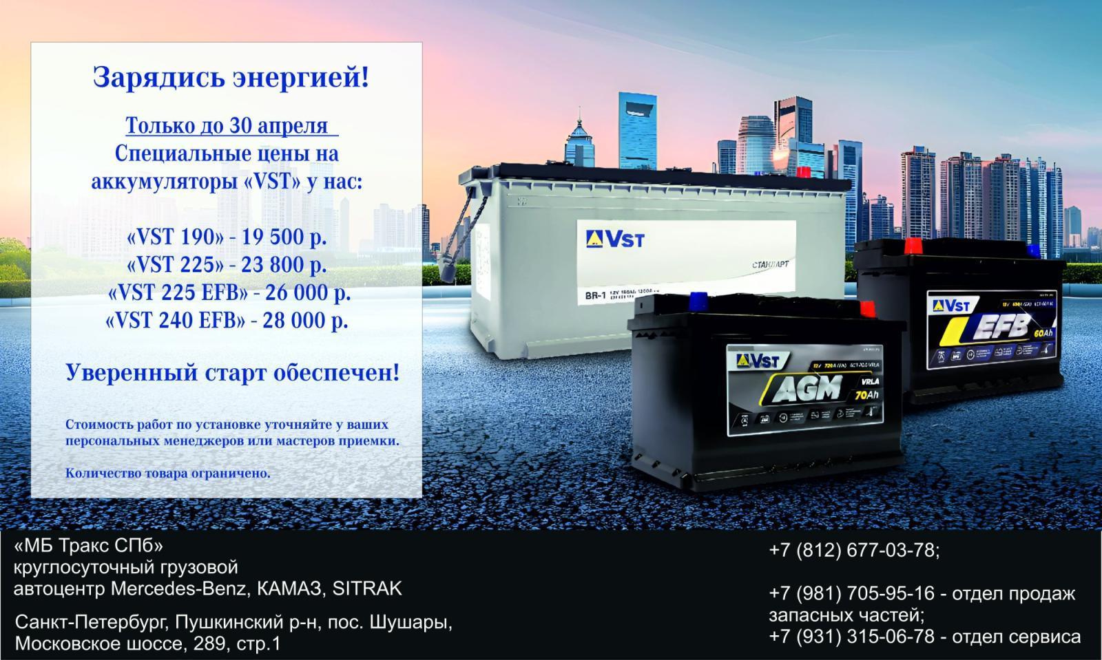 В ООО "МБ Тракс СПб" до 30 апреля – специальные цены на аккумуляторы VST!