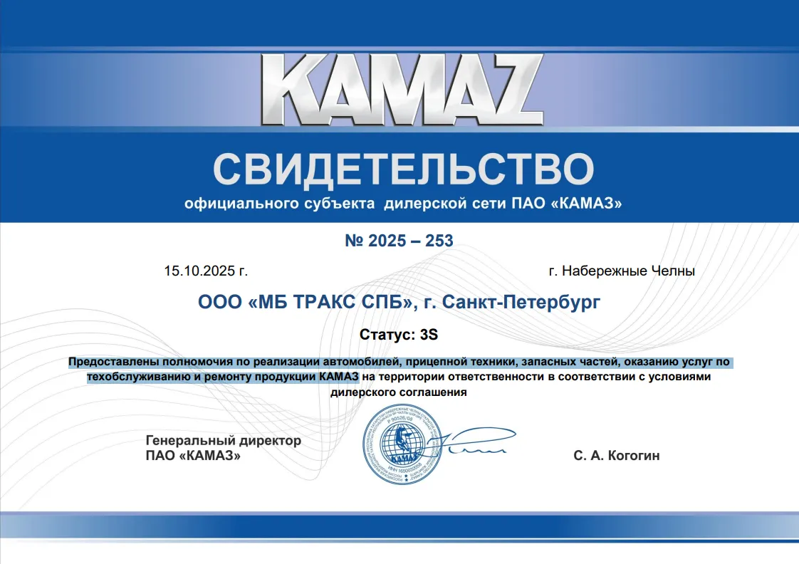 Обновленный статус официального дилера КАМАЗ (3S) позволяет нам обеспечить полное решение ваших транспортных задач: