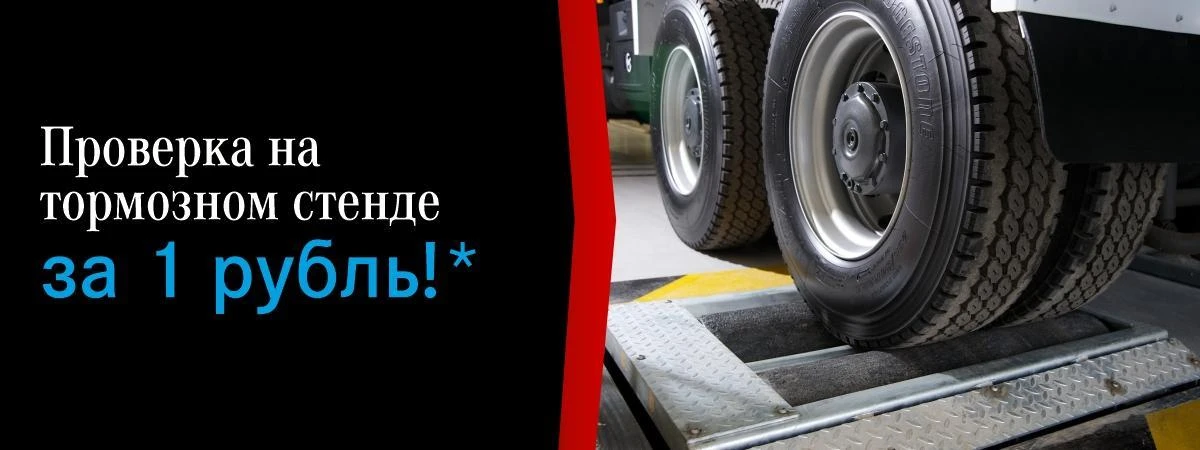 При прохождении планового технического обслуживания или проведении ремонта грузовой техники Mercedes-Benz - проверка на тормозном стенде всего за 1 рубль!