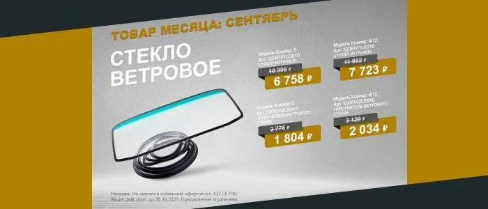 Специальная цена на ветровые стёкла и уплотнители к ним для КАМАЗ Компас до 30 сентября.