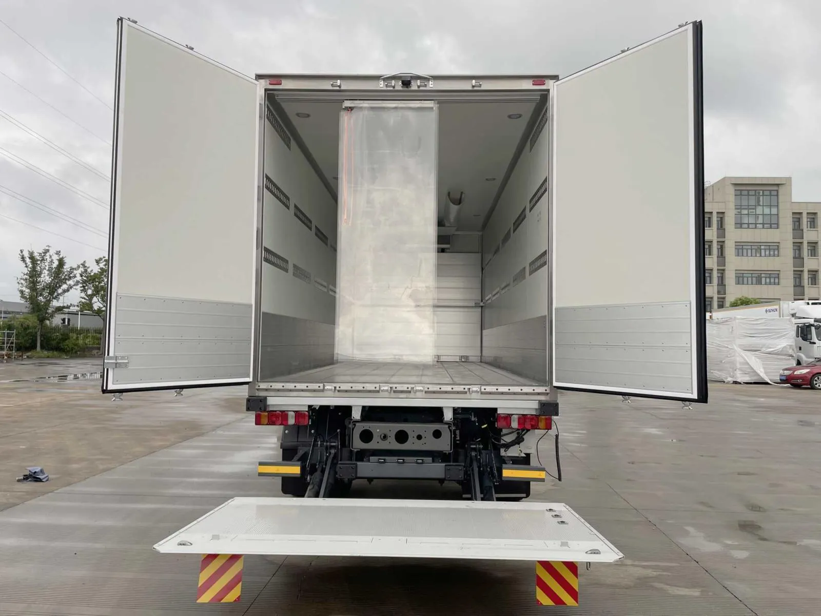 Фиксаторы груза с направляющими, дверной занавес из ПВХ, защитная пластина 300 мм.