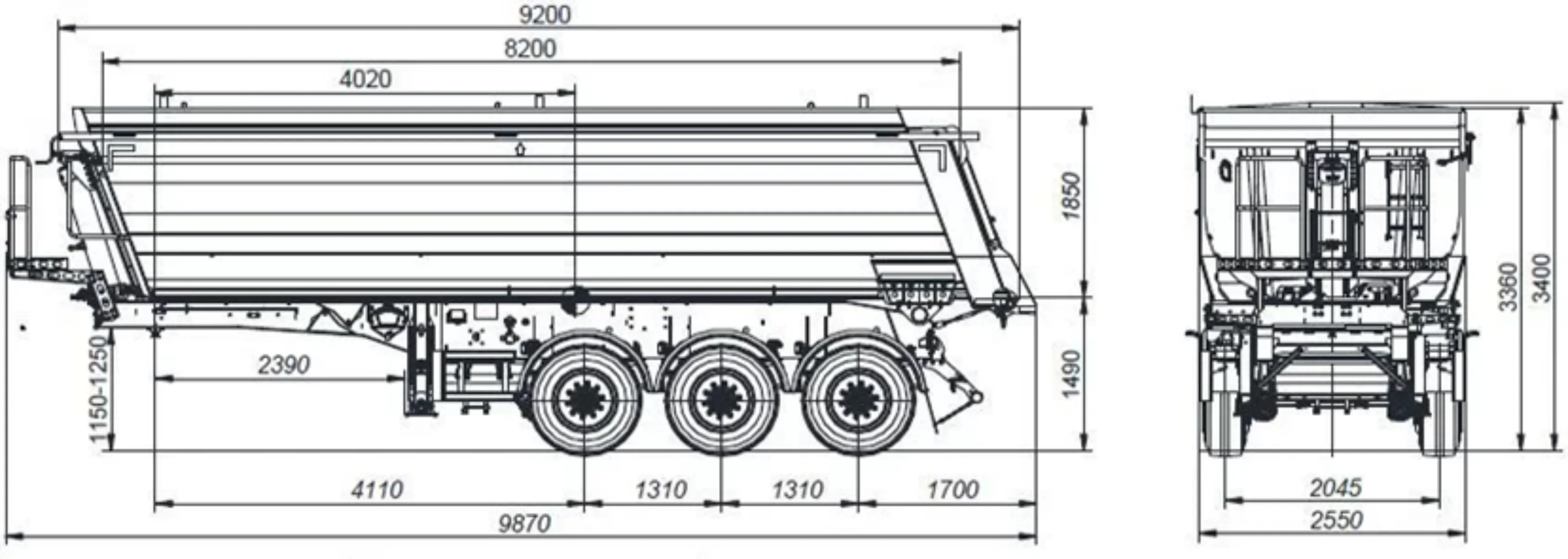 - внешние (ДхШхВ), мм 9 870 х 2 550 х 3 400