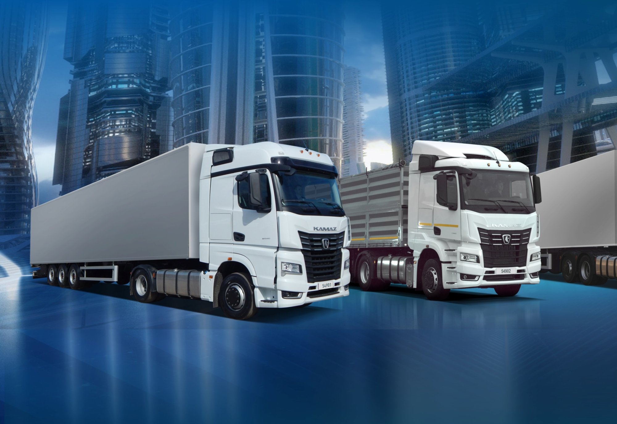 Модель KAMAZ-54901 - это тягач принципиально нового поколения. Автомобиль оснащен современным экономичным 6-цилиндровым рядным двигателем производства КАМАЗ и новейшей автоматизированной трансмиссией ZF Traxon. Конструкция обеспечивает увеличенный ресурс: для шасси — до 1,2 млн км (на 20% больше), для силового агрегата — до 1,5 млн км.